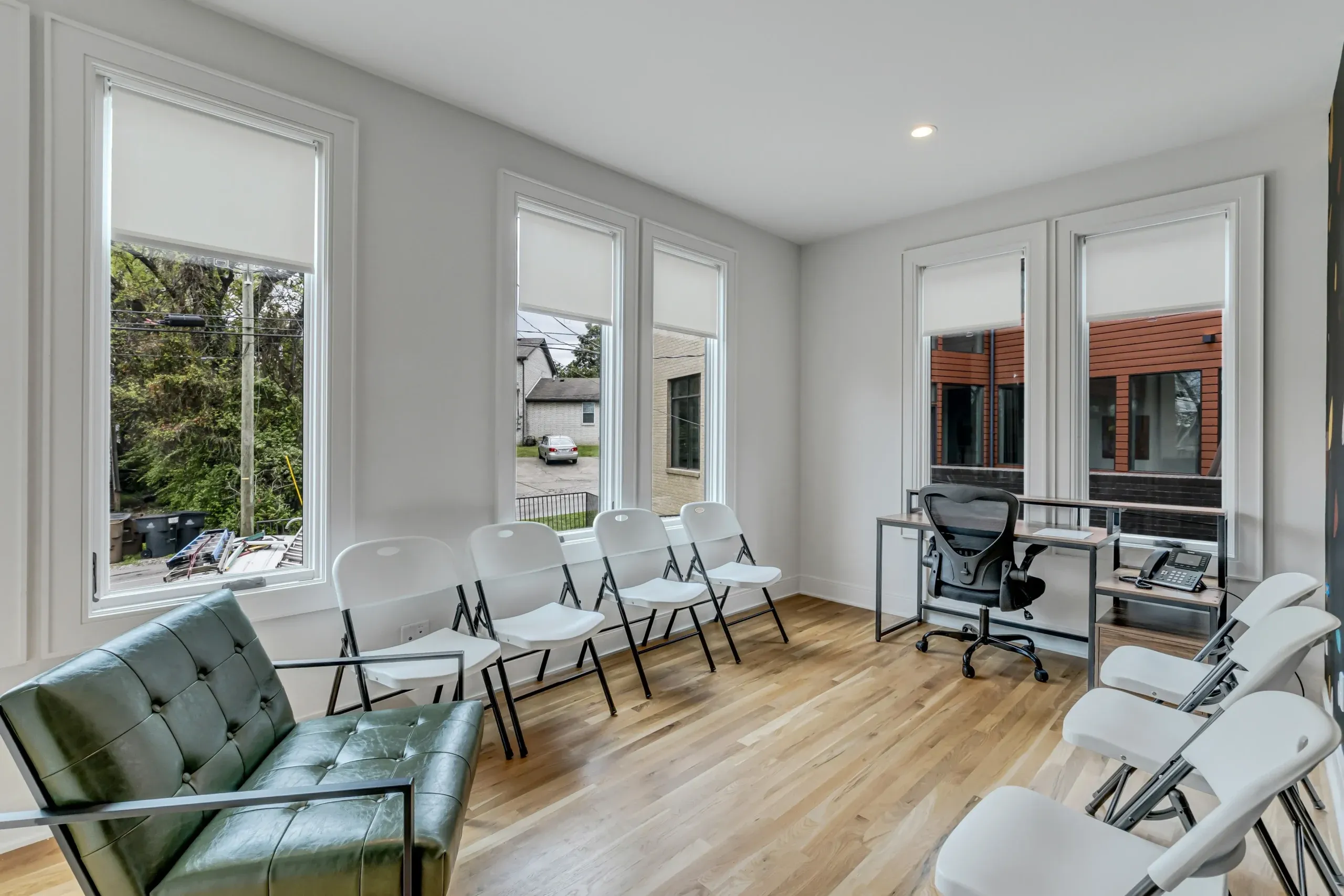 Thoughtfully furnished bedrooms, quiet lounges, and clean, welcoming common areas create a restorative environment, while private intake spaces protect your confidentiality from day one. The campus features dedicated nursing and monitoring areas for round-the-clock support, along with comfortable spaces for reflection and rest. Every detail of the setting—lighting, layout, and flow—was planned to reduce stress and help you focus on healing.